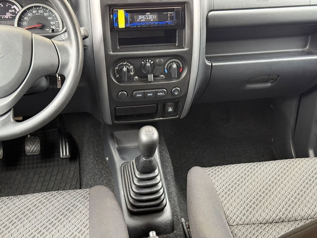 sparsamer universeller ALLRAD-Klein-Jeep Suzuki Jimny, Heckantrieb oder 4x4 - elektronisch per Knopfdruck zuschaltbarer Allrad 4H (Straße) / 4L(Geländeuntersetzung), Servolenkung, Schaltgetriebe, Wärmeschutzverglasung, 3. Bremsleuchte, Drehzahlmesser, ABS, Radio, geteilt umklappbare Rücksitzlehne mit separat einstellbarer Lehnen-Neigung, Kopfstützen hinten, ...