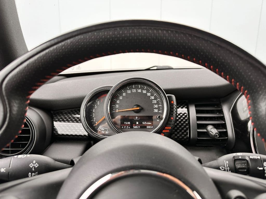 Hier zeigen wir Ihnen unseren MINI COOPER S. Der Mini Cooper S mit dem exklusiven John Cooper Works (JCW) Paket verkörpert unvergleichliche Sportlichkeit und stilvolles Design. Das LEISTUNGSSTARKE Fahrzeug begeistert mit seinem charakteristischen Aussehen, das durch aerodynamische Elemente, markante Optik und die schwarzen 17-Zoll-Leichtmetallräder betont wird.