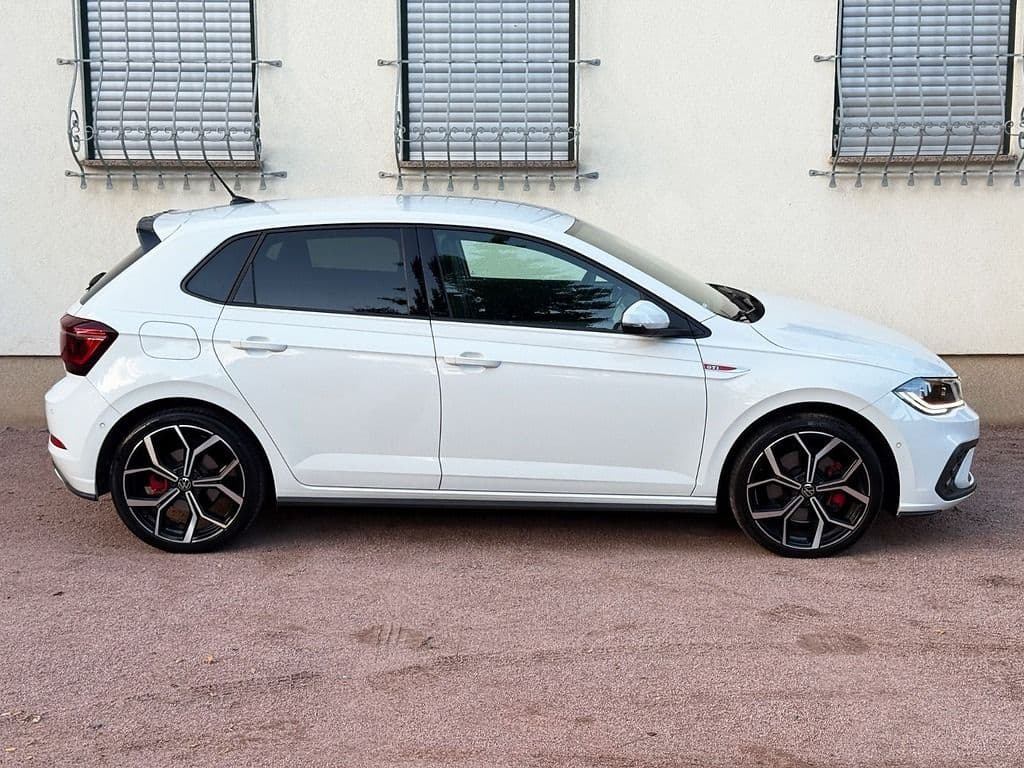 Der VW Polo GTI vereint kompaktes Design mit echter Sportwagen-Performance. Mit 205 PS, DSG-Getriebe und sportlichem Fahrwerk bietet er rasanten Fahrspaß bei voller Alltagstauglichkeit. Typisch GTI: markante Optik, Sportsitze im „Clark“-Design und jede Menge Emotion hinter dem Lenkrad.